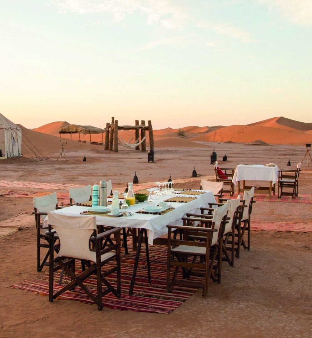 Arrive at Erg Chigaga Luxury Camp to relish the sunset amid the magnificent sand dunes of Erg Chigaga. Spend the night at the luxuriously appointed tents after enjoying a delicious traditional Moroccan meal.